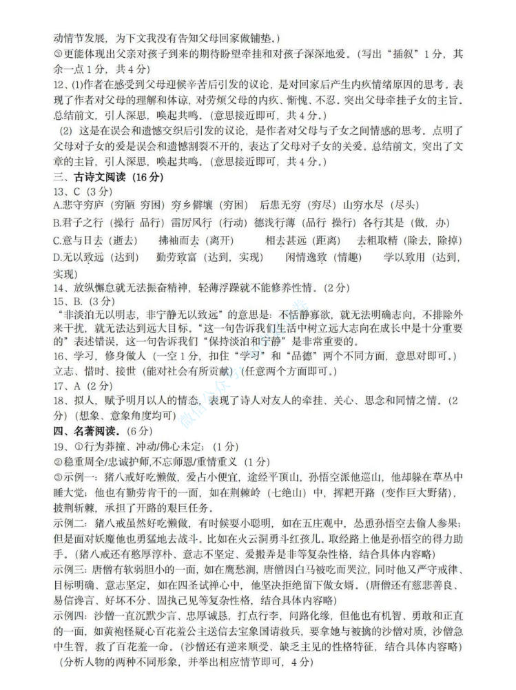 16. 甲文诸葛亮诫子,乙文刘备训儿,两文都谈到了(1)__________和(2)__________的重要性,除此之外,诸葛亮还劝勉儿子要(3)__________和(4)__________。(4分)